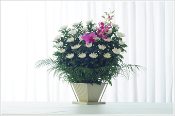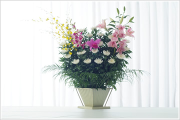 - 色花を豊富にした和洋折衷の供花です。