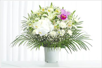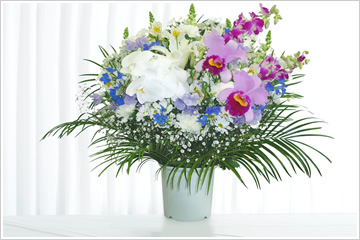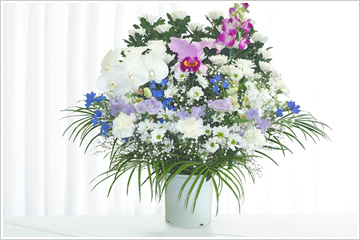 - 色花を豊富にした和洋折衷の豪華な供花です。