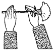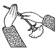 3. 左の掌をかえして献花台の上に置き、一礼します。 |